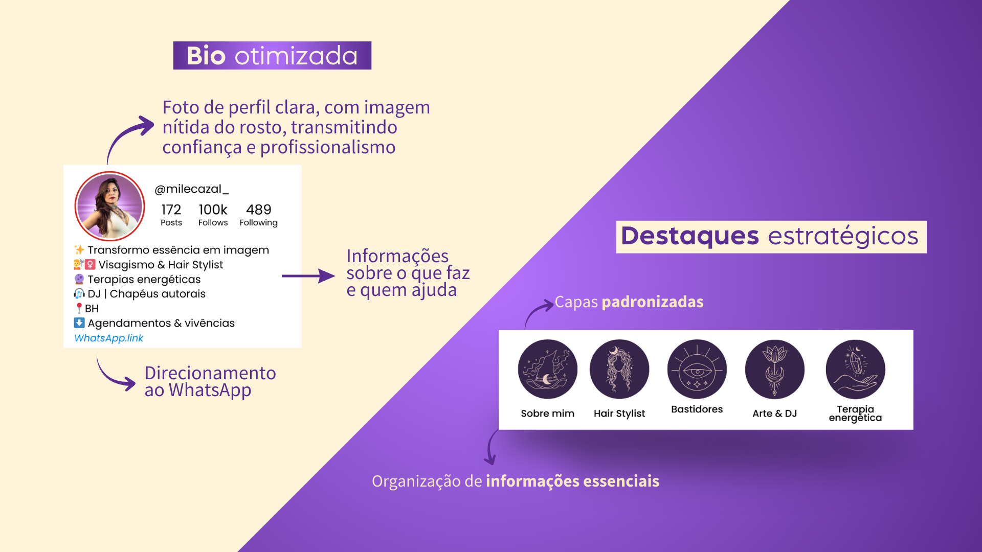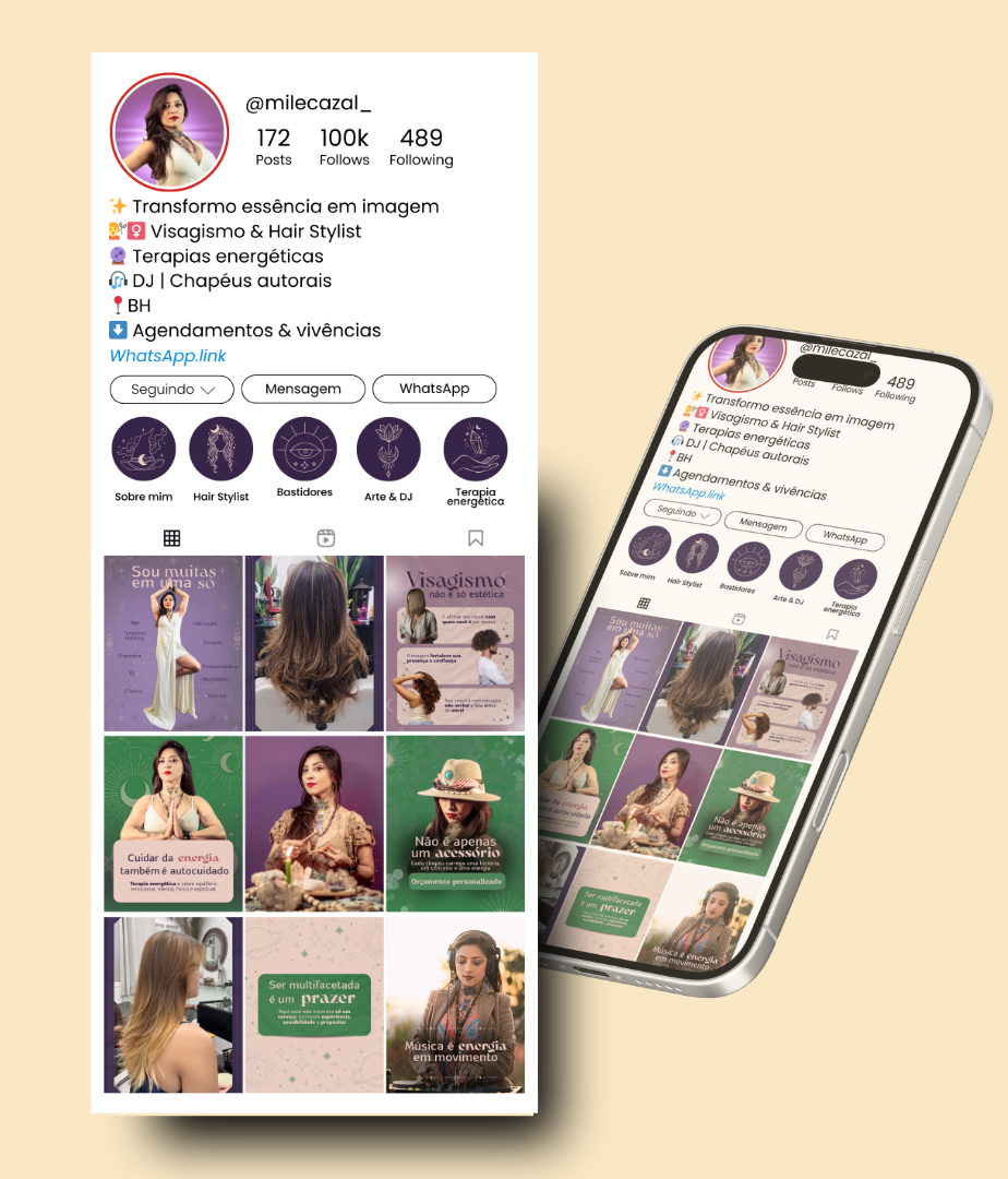 Reposicionamos a presença digital da Mile Bruxa para trazer clareza, organização e estratégia à comunicação de suas diferentes atuações profissionais.